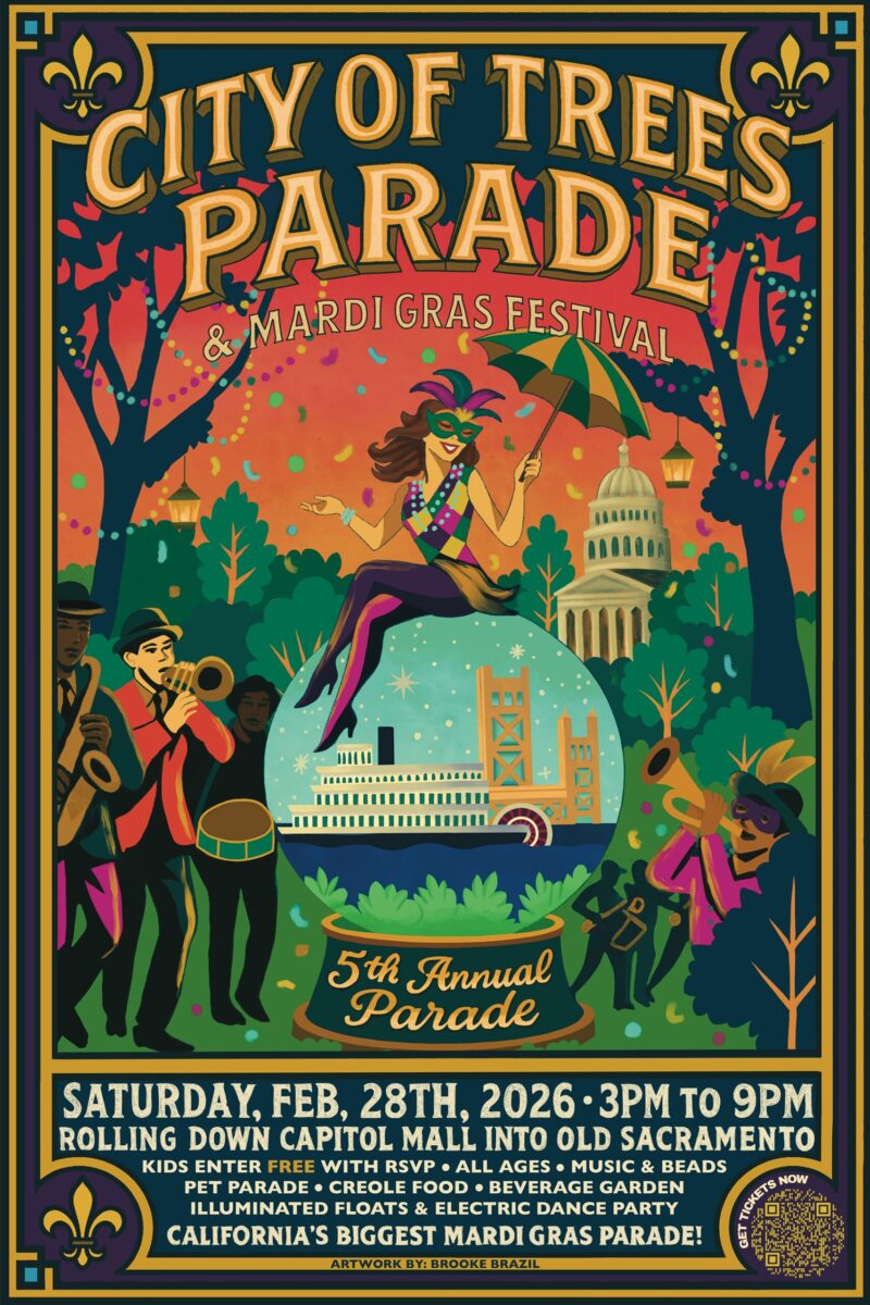 Welcome to the FIFTH annual City of Trees Parade & Mardi Gras Festival!! Our 100% nonprofit Mardi Gras event will take place on Saturday, February 28th, 2026. The City of Trees Parade is a dazzling showcase of Sacramento’s rich diversity and culture! Last year’s event included more than 1,300 performers from 55 different groups, and this year’s event will be even bigger!! Follow us @cityoftreesparade on FB and IG to keep up with all the latest details or visit our website www.cityoftreesparade.org