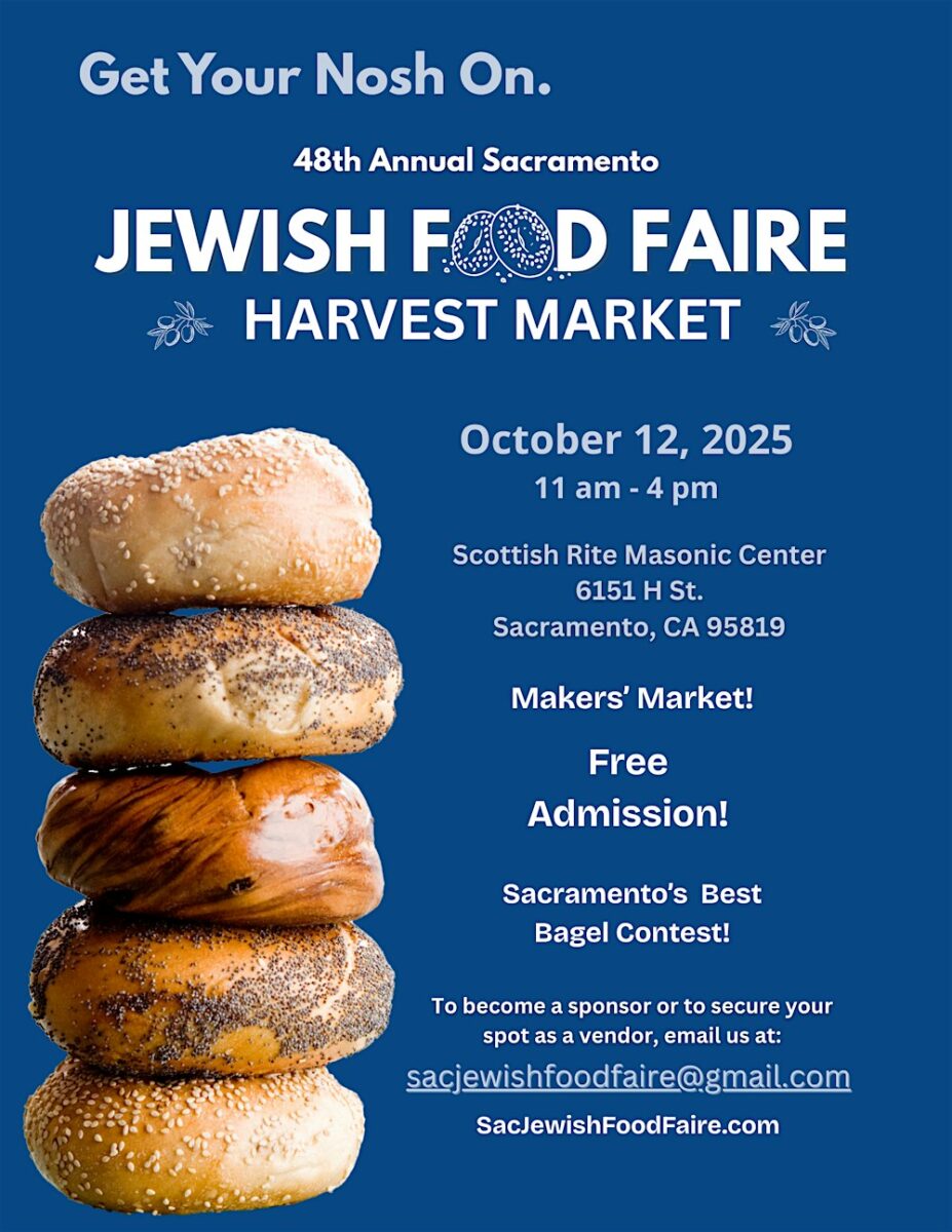 For nearing five decades, the Sacramento Jewish Food Faire has brought thousands together from the Greater Sacramento area to enjoy ethnically vibrant foods and culture. This year, the 48th Jewish Food Faire Harvest Market is being held at the Sacramento Scottish Rite Masonic Center on Sunday, October 12, 2025 with expanded food sales, vendor fair, entertainment, a special beer/wine garden, and even Sacramento’s Best Bagel Contest! Admission to the event is FREE! (Hey, you don’t have to be Jewish to enjoy Jewish Food!) Get your nosh on and enjoy the day with us! Sacjewishfoodfaire.com