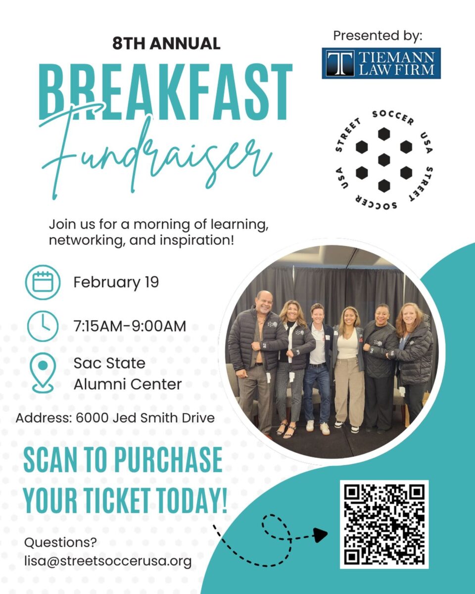 Join Street Soccer USA Sacramento for a lively fundraising breakfast and some really fun speakers who are lending their support to Street Soccer USA in Sacramento.